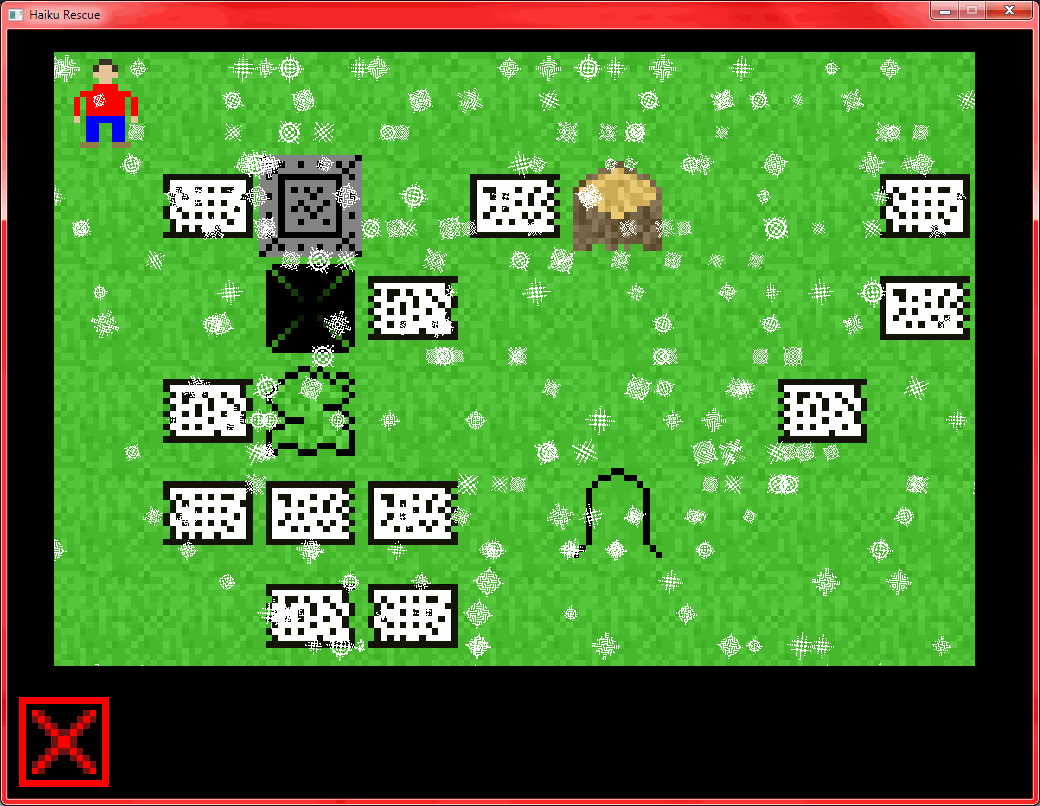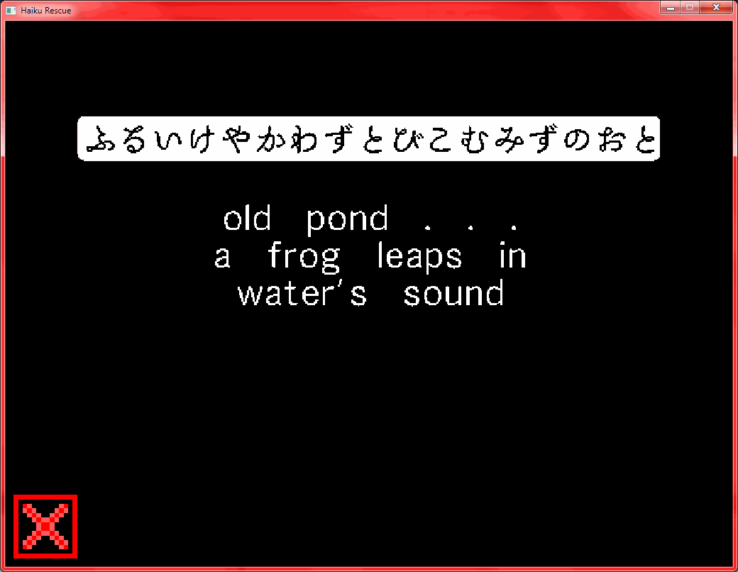 You been tasked with delivering slips of paper with haiku written on them. During your travels, someone rips them up and throws them into a field. You must go through the magically changing field and collect the missing pieces. To beat a level, you must combine the pieces of paper. 4 levels in all.