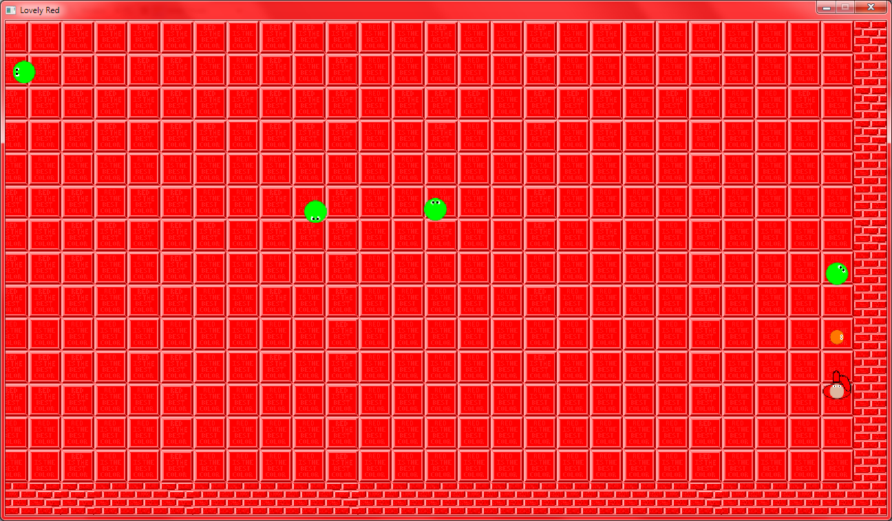 This is my SpeedHack 2011 game. In this game, you control a dude who has a red room, and green slimes have appeared and are changing the room color. You must take your spray gun, and scare them away.